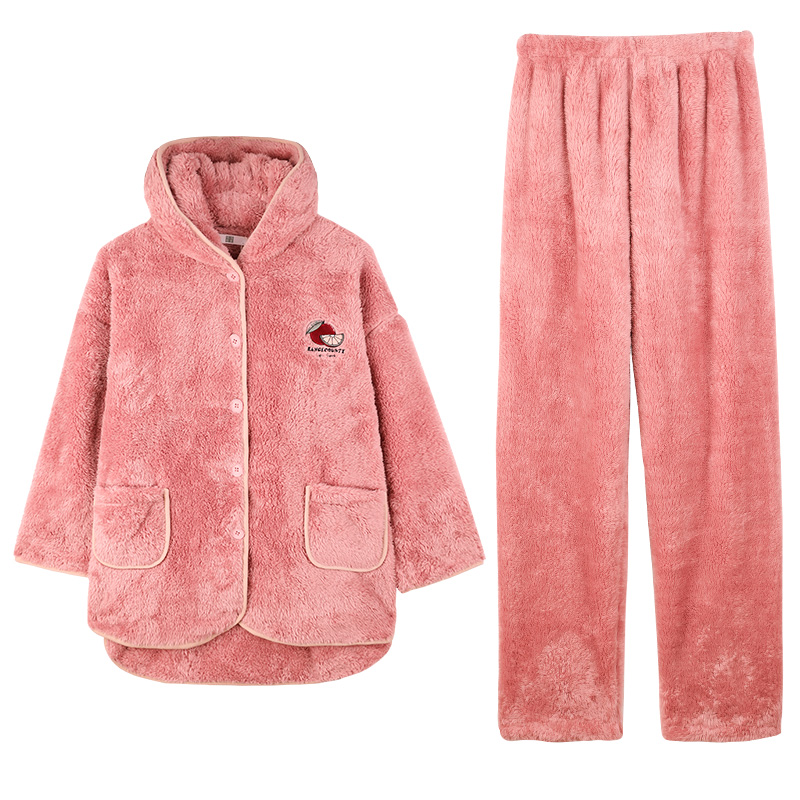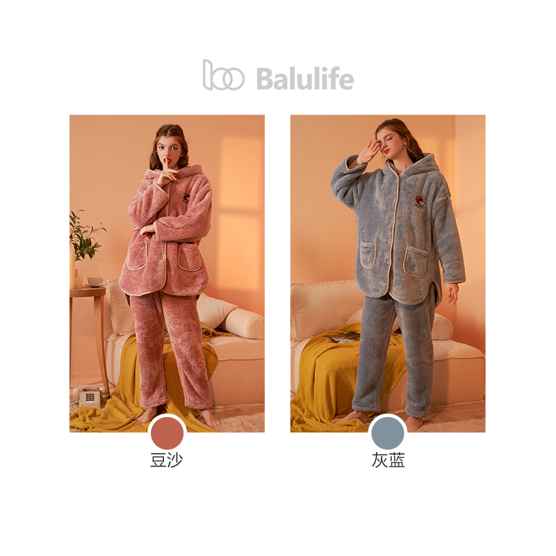 佰伦世家法兰绒睡衣女2024年新款 秋冬珊瑚绒加厚保暖连帽家居服