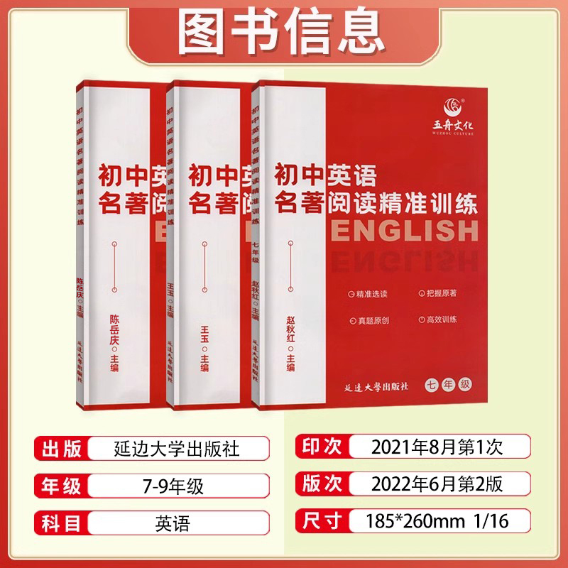 五舟文化初中英语名著阅读精准训练七年级八年级九年级 社 精准选读把握原著真题原创高效训练初中英语789年级精准训练延边大学出版