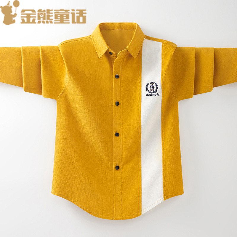 中大童长袖 男童新款 2021春秋上衣外套洋气童装 韩版 灯芯绒衬衣 衬衫