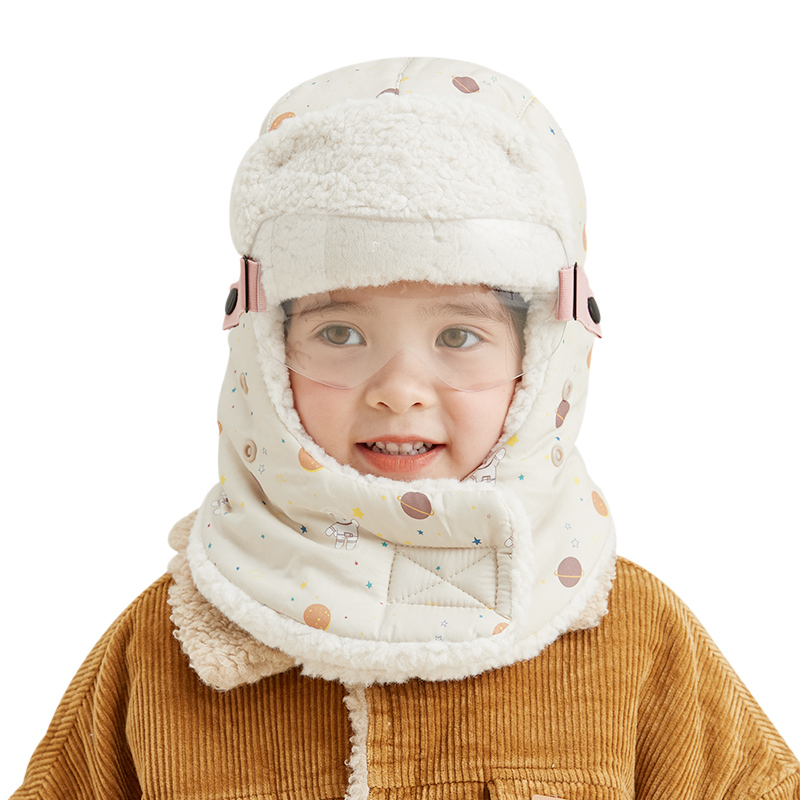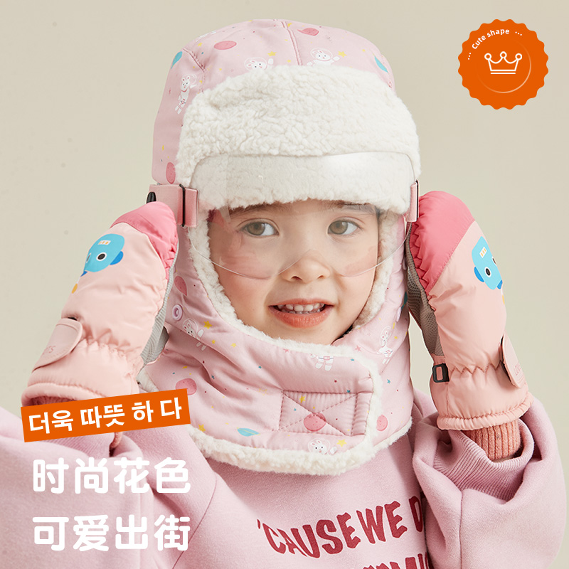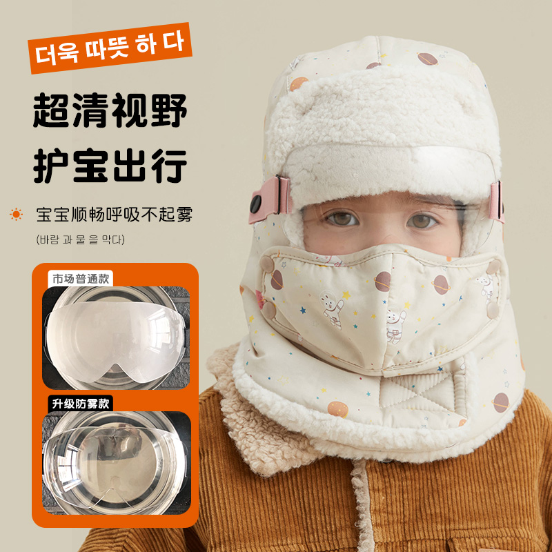 儿童雷锋帽护耳防风护脸帽子秋冬季 加绒加厚保暖一体帽宝宝男女童