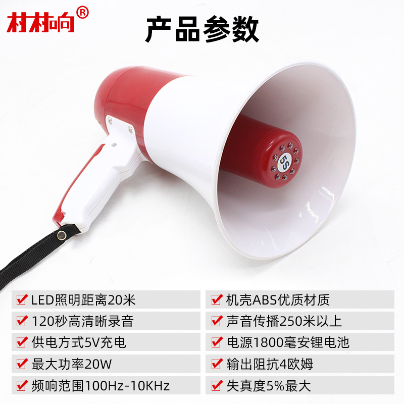带灯爆闪手持喊话器大功率充电录音地摊宣传叫卖喇叭室外大音量