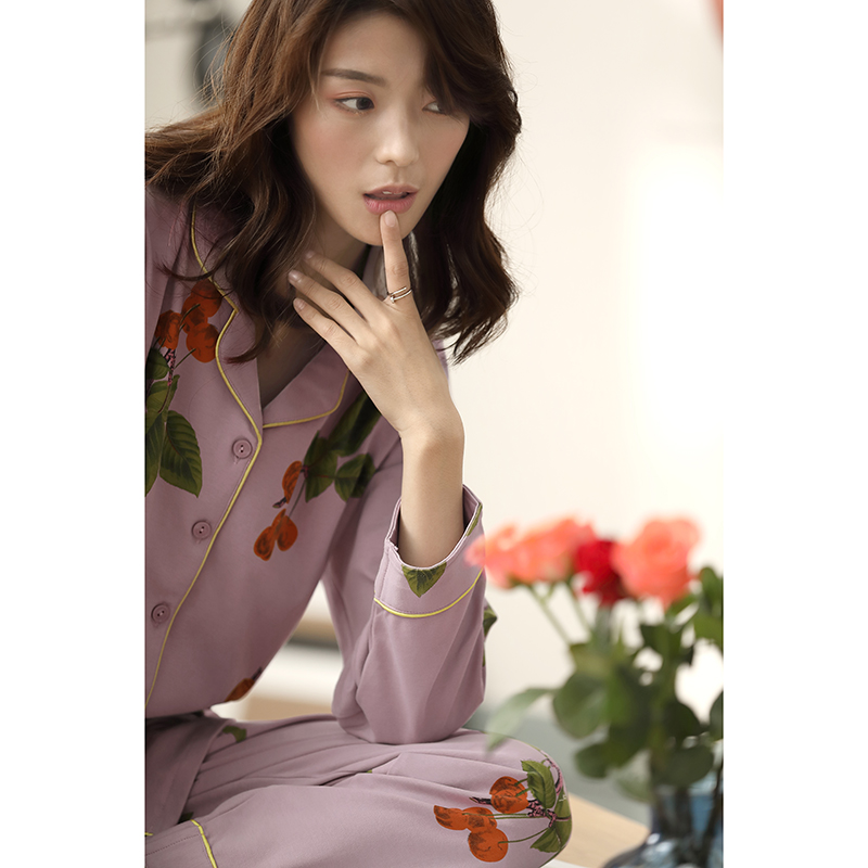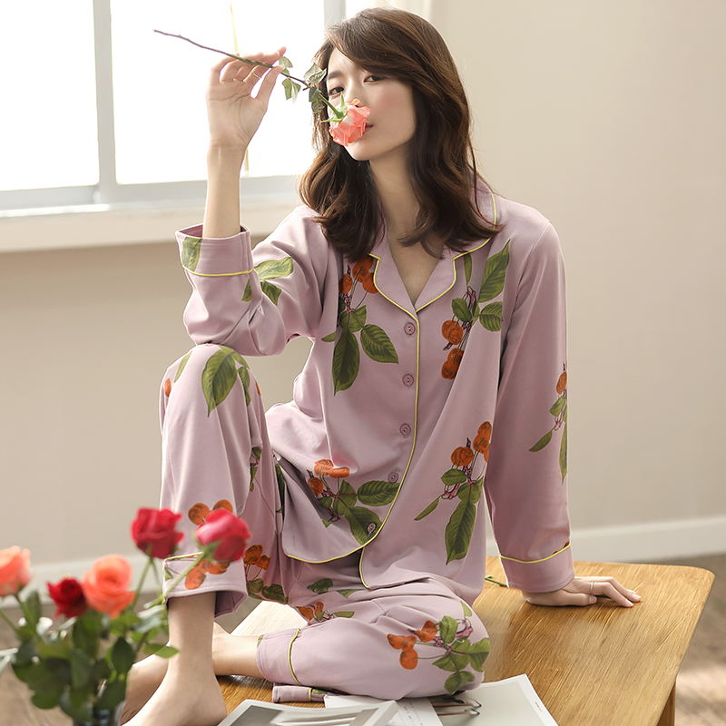 家居服套装 全棉女士国风大码 纯棉中年妈妈花卉秋季 睡衣女春秋长袖