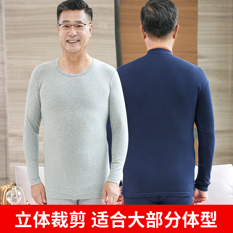 内穿老年人保暖内衣薄款 中年男士 爸爸全棉棉毛衫 纯棉套装 秋衣秋裤