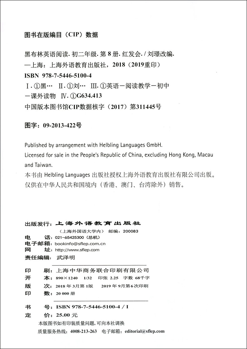八年级初中生课外英语分级阅读绘本上海外语教育出版 黑布林英语阅读初二年级8红发会The league初二年级第8册红发会 headed 社 red
