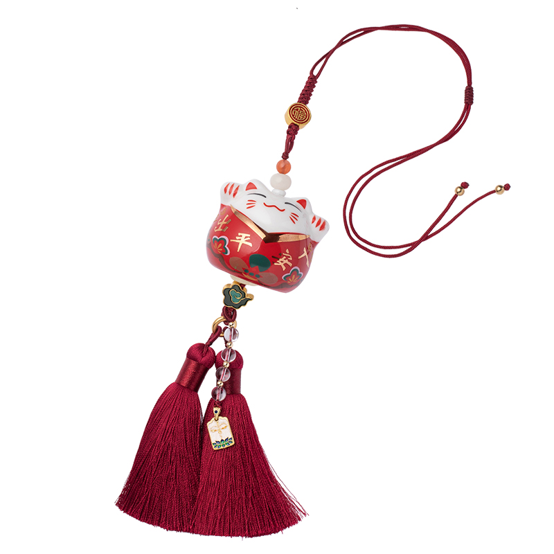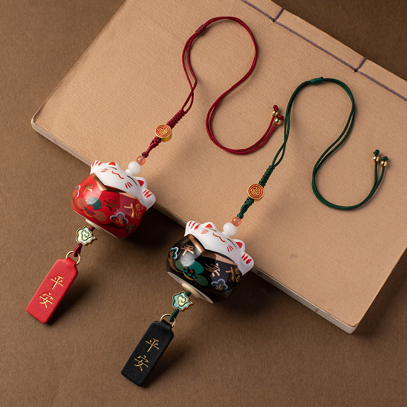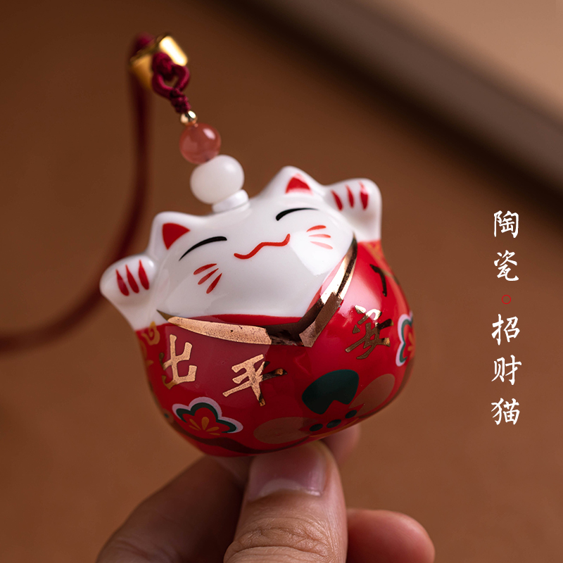 汽车挂件车内吊饰招财猫陶瓷手工车载后视镜挂饰男女款 创意可爱