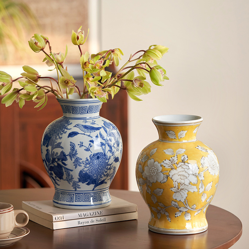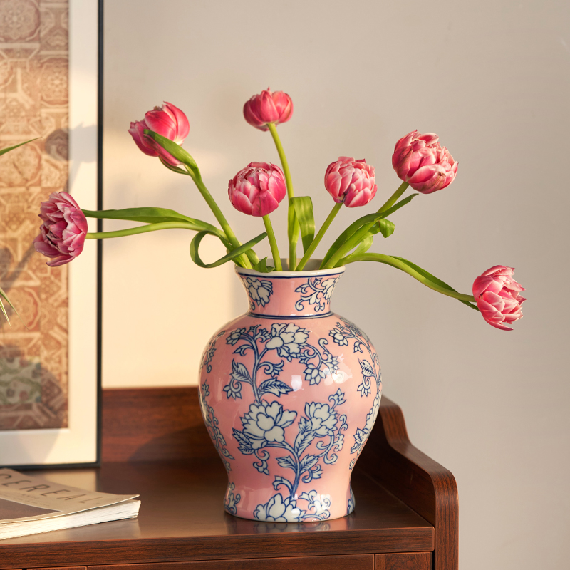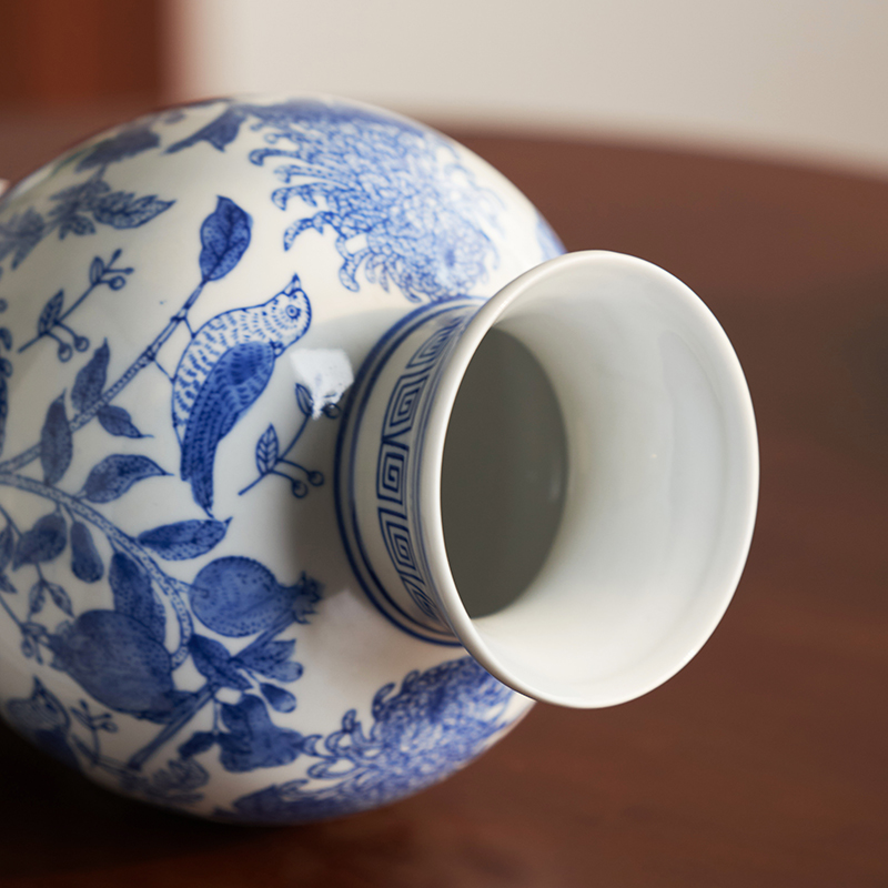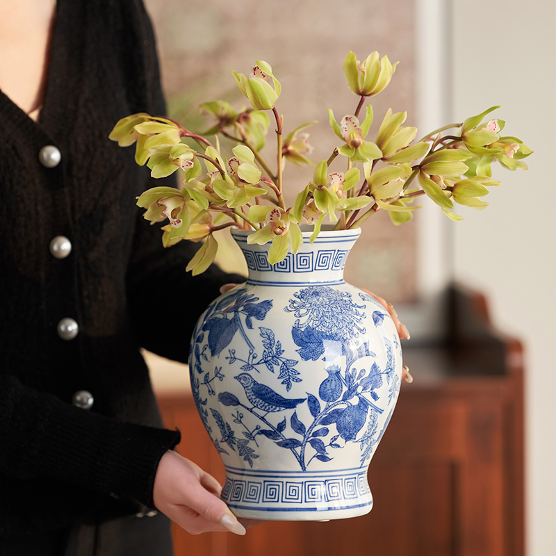 青花瓷花瓶釉下彩手绘陶瓷摆件新中式 饰品 轻奢高级感客厅插鲜花装