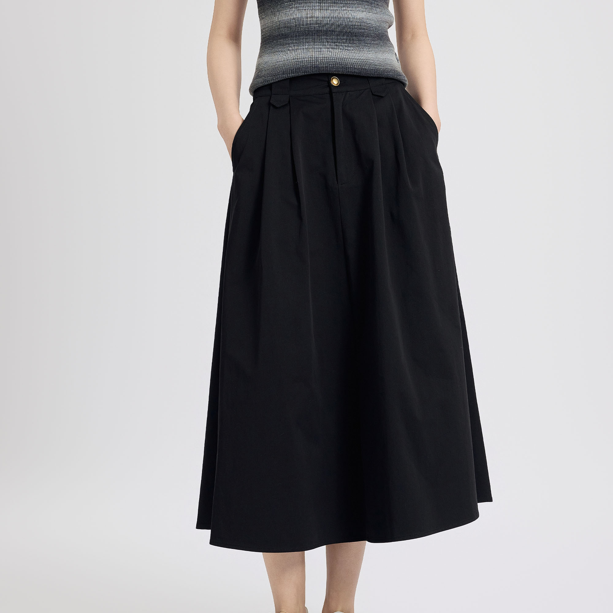 Basic 百家好通勤复古大摆裙子女2025春高腰显瘦a字半身裙 House