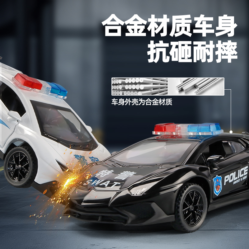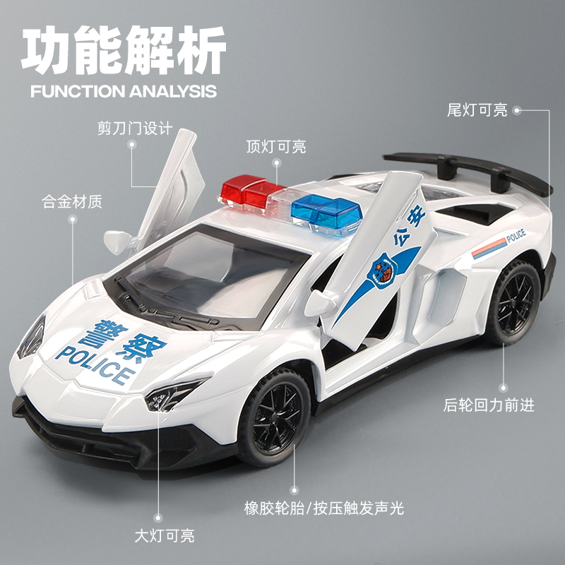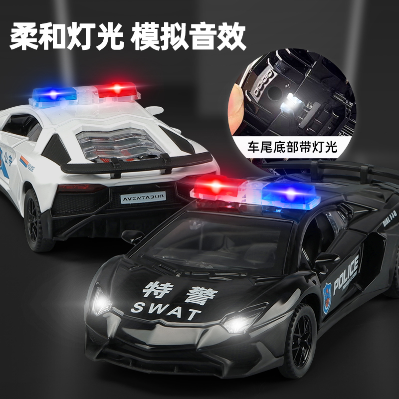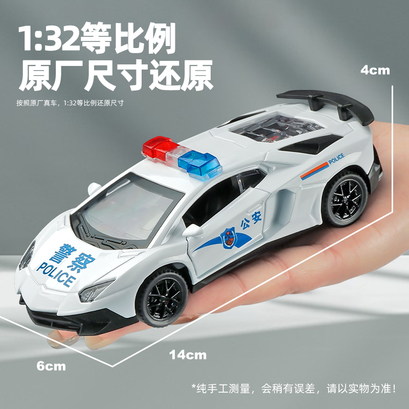 32兰博基尼跑车模型合金小汽车儿童玩具男孩公安车布加迪特警车