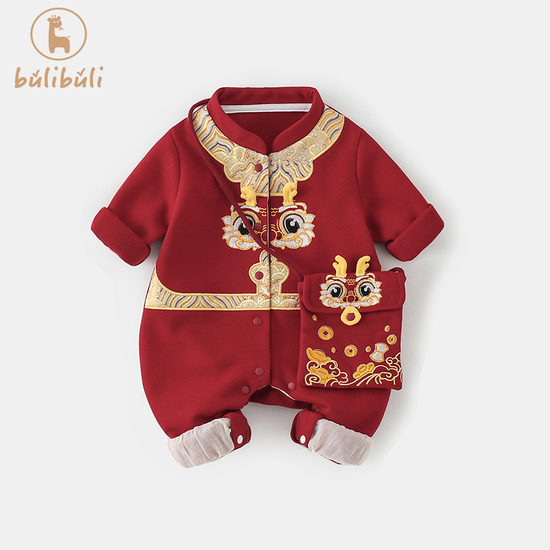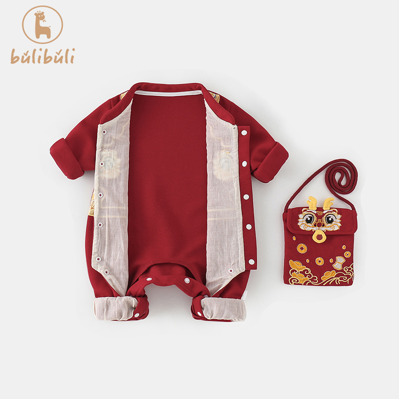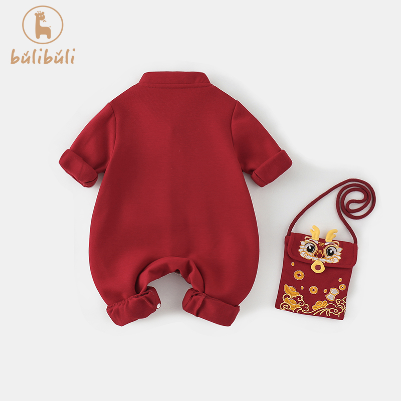 爬爬服 宝宝中国风连体衣满月百天哈衣春季 婴儿拜年服薄款 衣服春装
