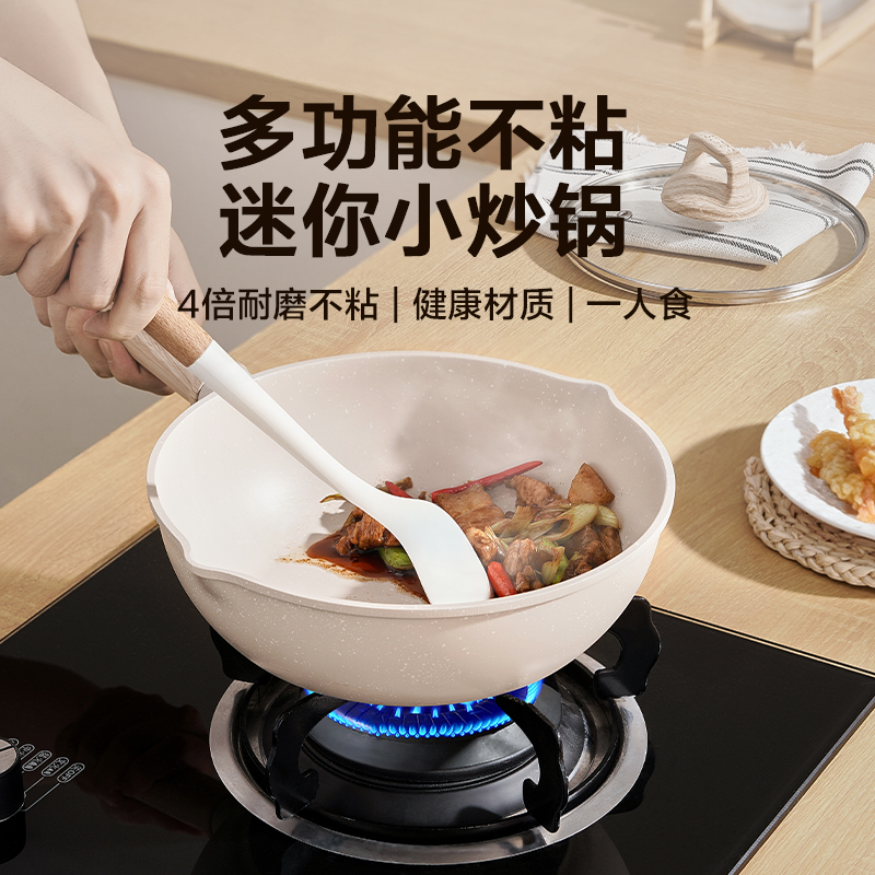美 不粘锅炒锅家用锅炒菜锅平底锅麦饭石色电磁炉燃气灶专用炊具