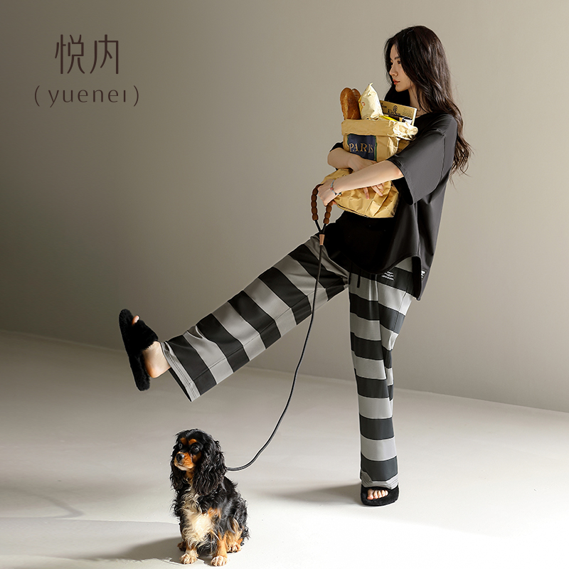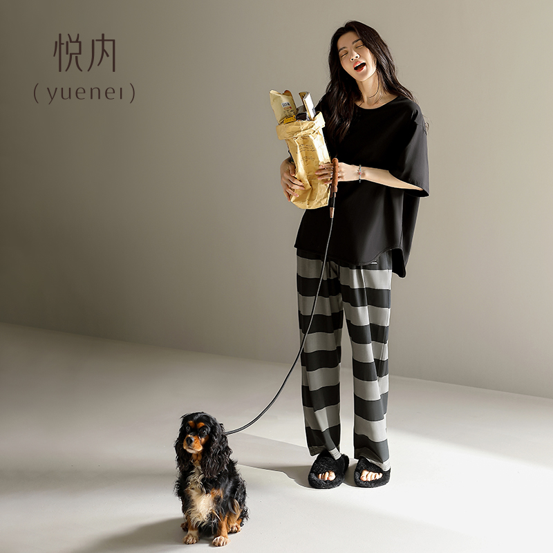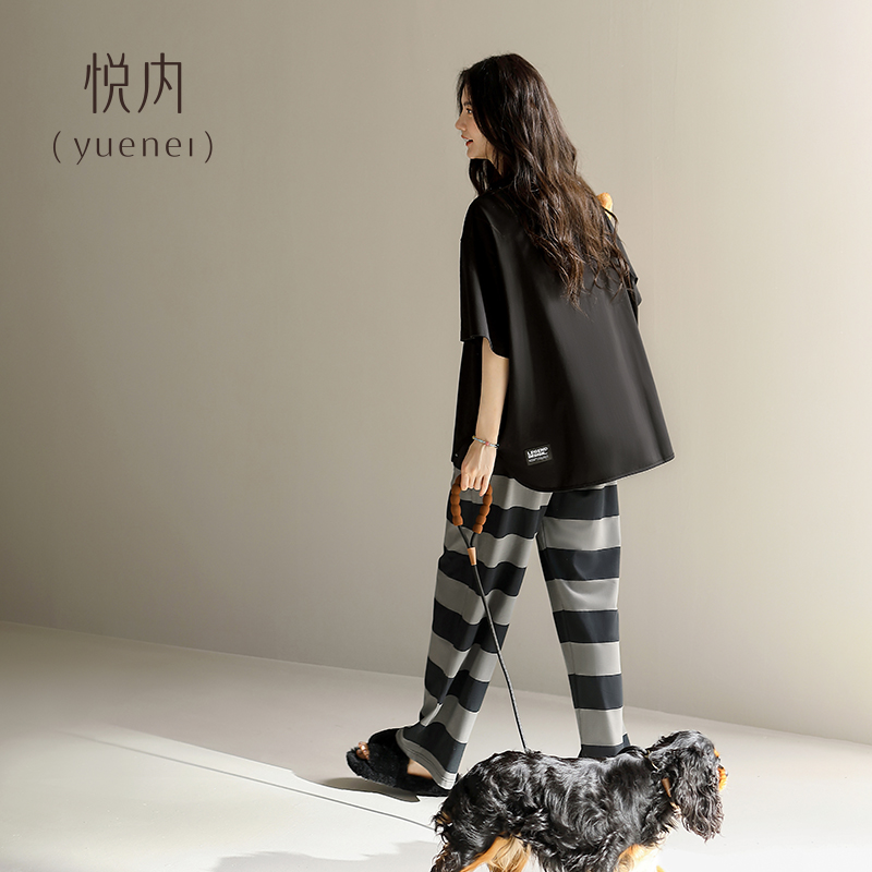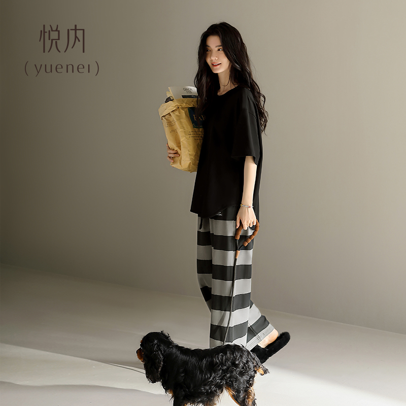 加大码 悦内带胸垫睡衣女款 长裤 夏天纯棉短袖 家居服休闲可外穿 夏季