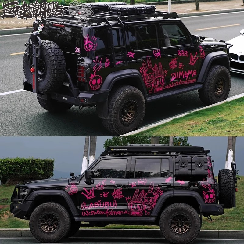 适用于坦克300卡通LABUBU拉花装 饰方程豹5烈马熊猫卡丁拉布布车贴