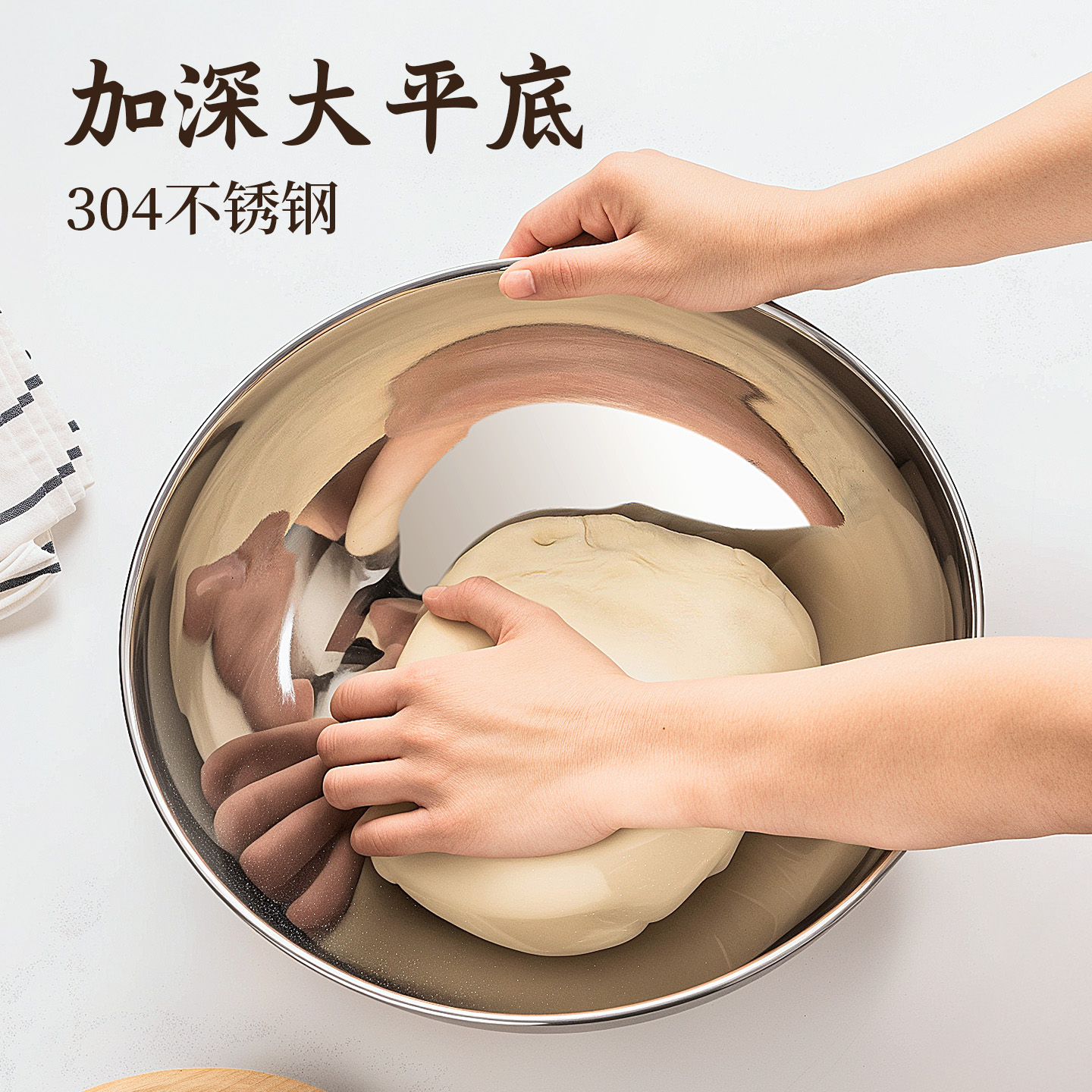onlycook 加厚304不锈钢盆加深汤盆家用和面烘焙料理打蛋盆洗菜盆