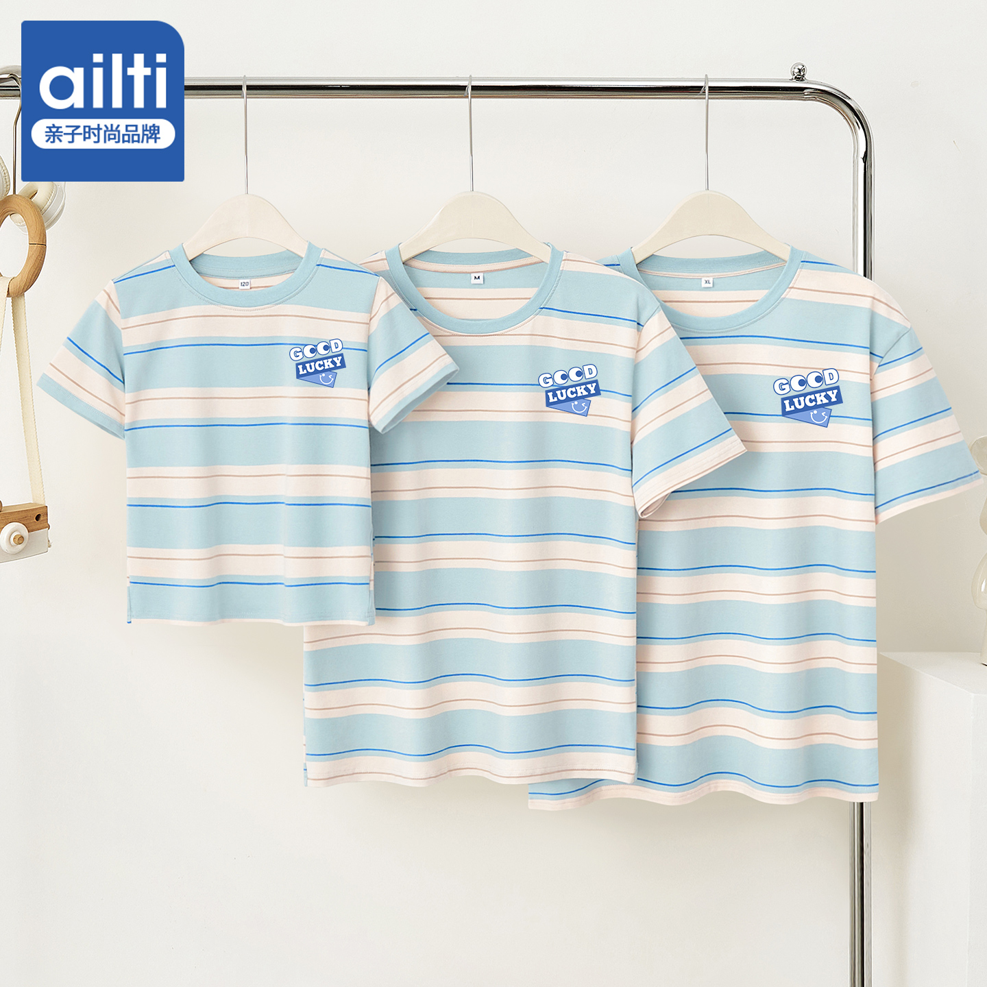 创意纯棉条纹短袖 夏季 t恤一家三口海边度假出游上衣 母女款 亲子装
