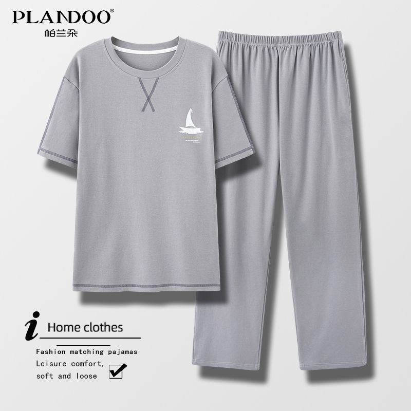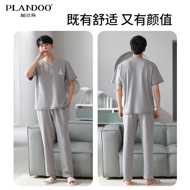 长裤 柔软舒适男士 大码 帕兰朵睡衣男款 家居服套装 短袖 薄款 纯棉夏季