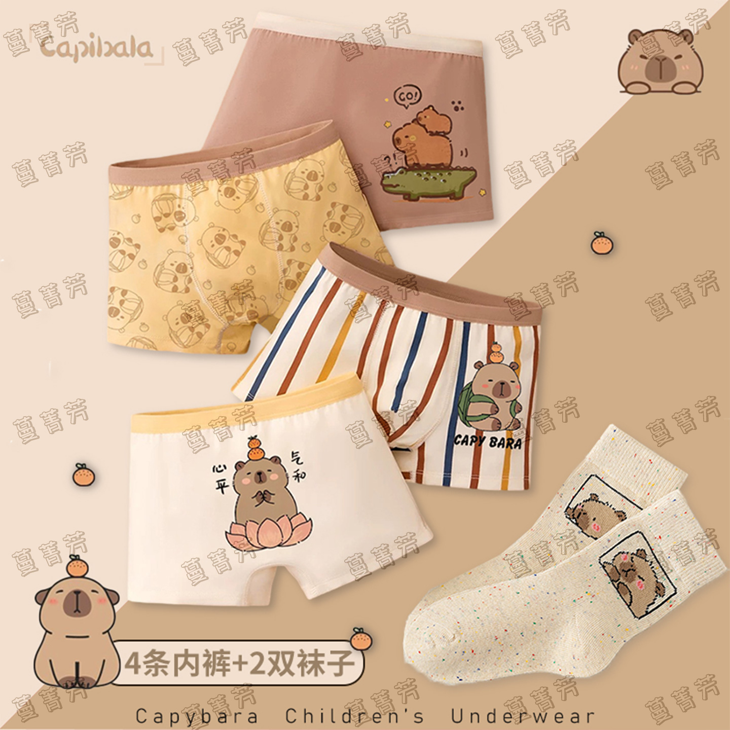 衩男孩平角裤 卡皮巴拉内裤 儿童裤 全棉四角裤 男童纯棉A类2025新款