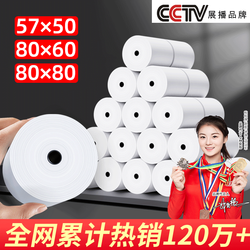 热敏纸打印纸57x50收银纸80x80热敏纸80x60x50美团外卖厨房超市收银机57x40x30通用58mm银行排队小票纸整箱装