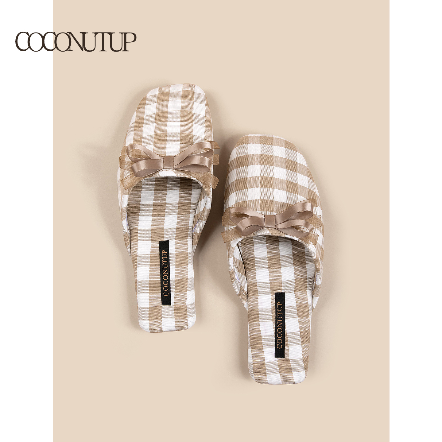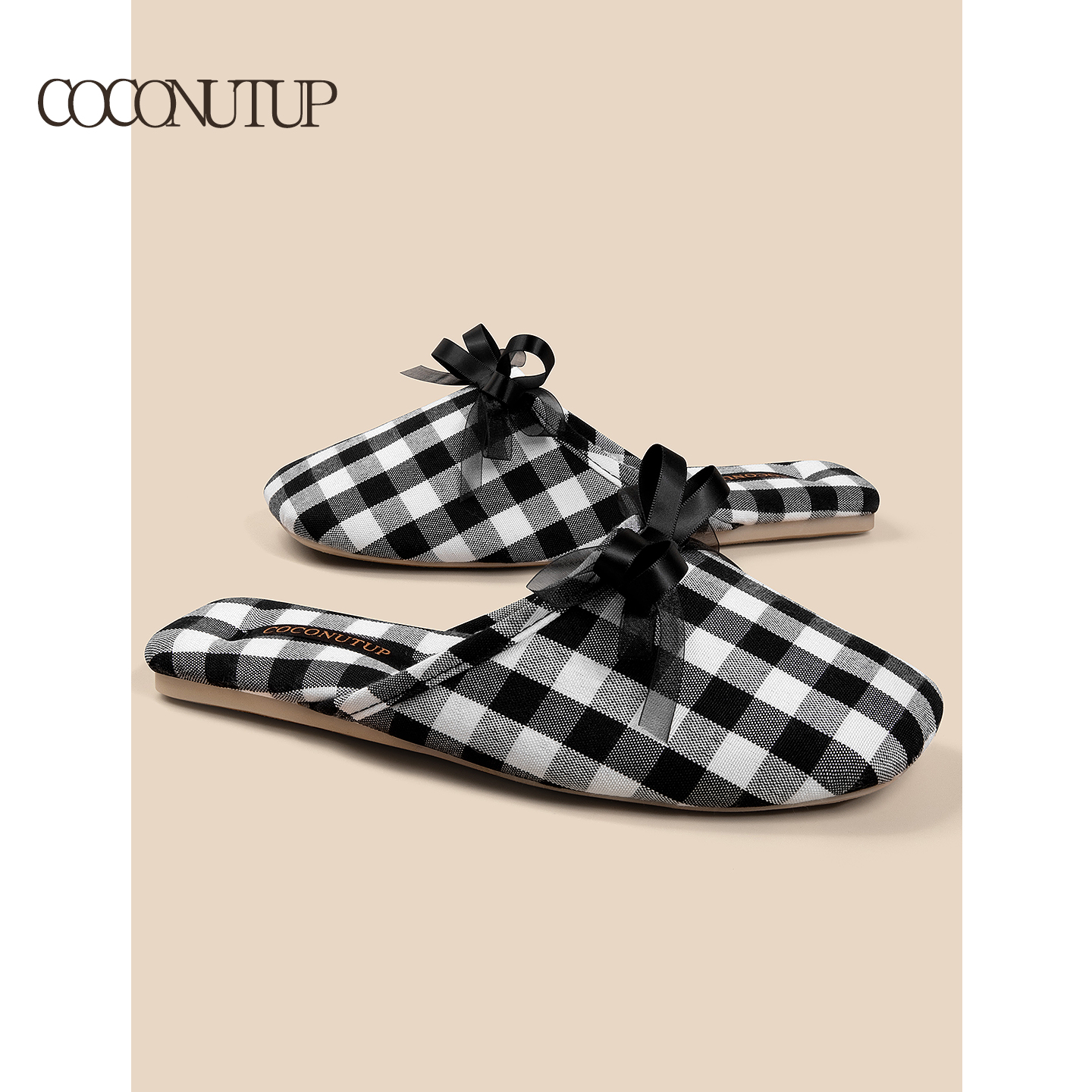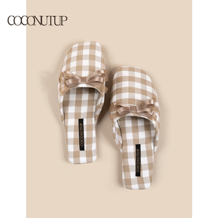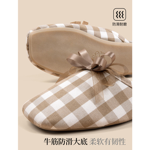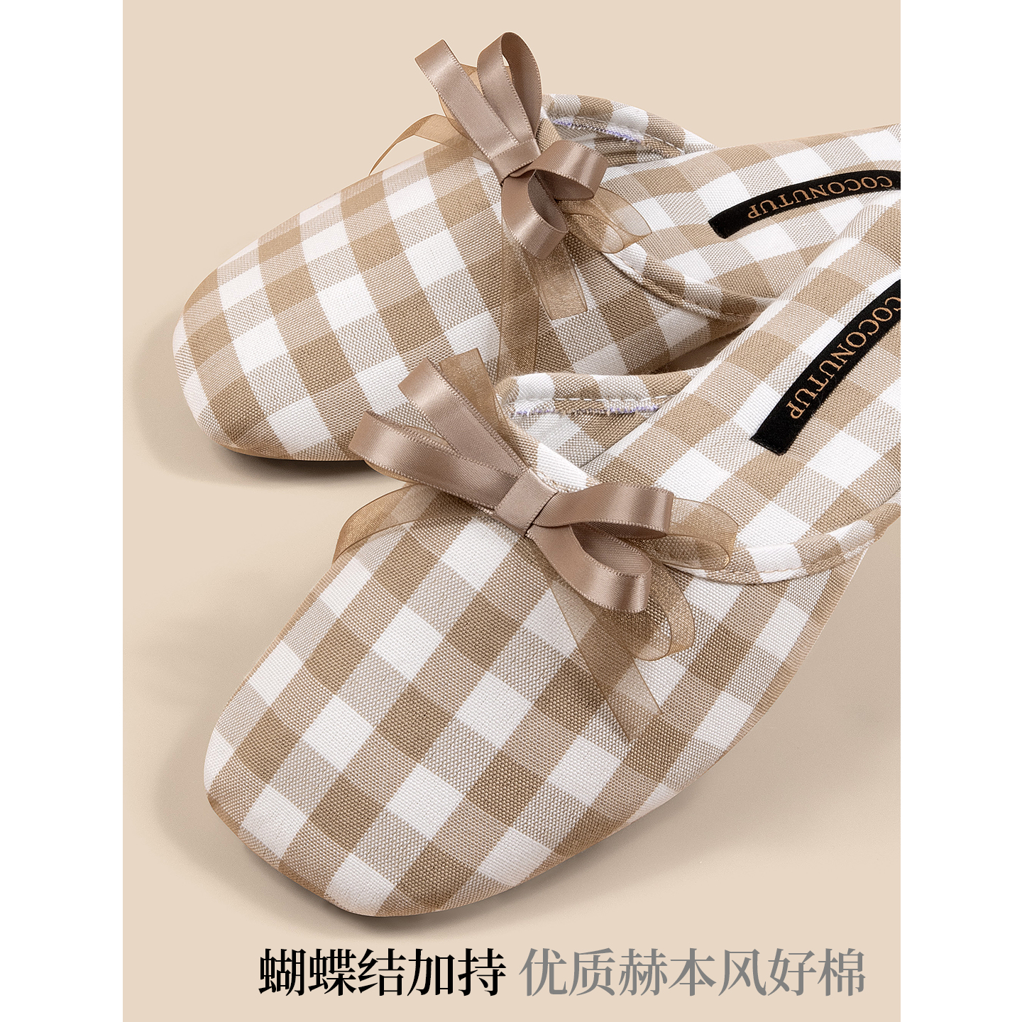 格纹蝴蝶结拖鞋 高级感室内家居包头静音情侣一对棉拖 女夏2025新款