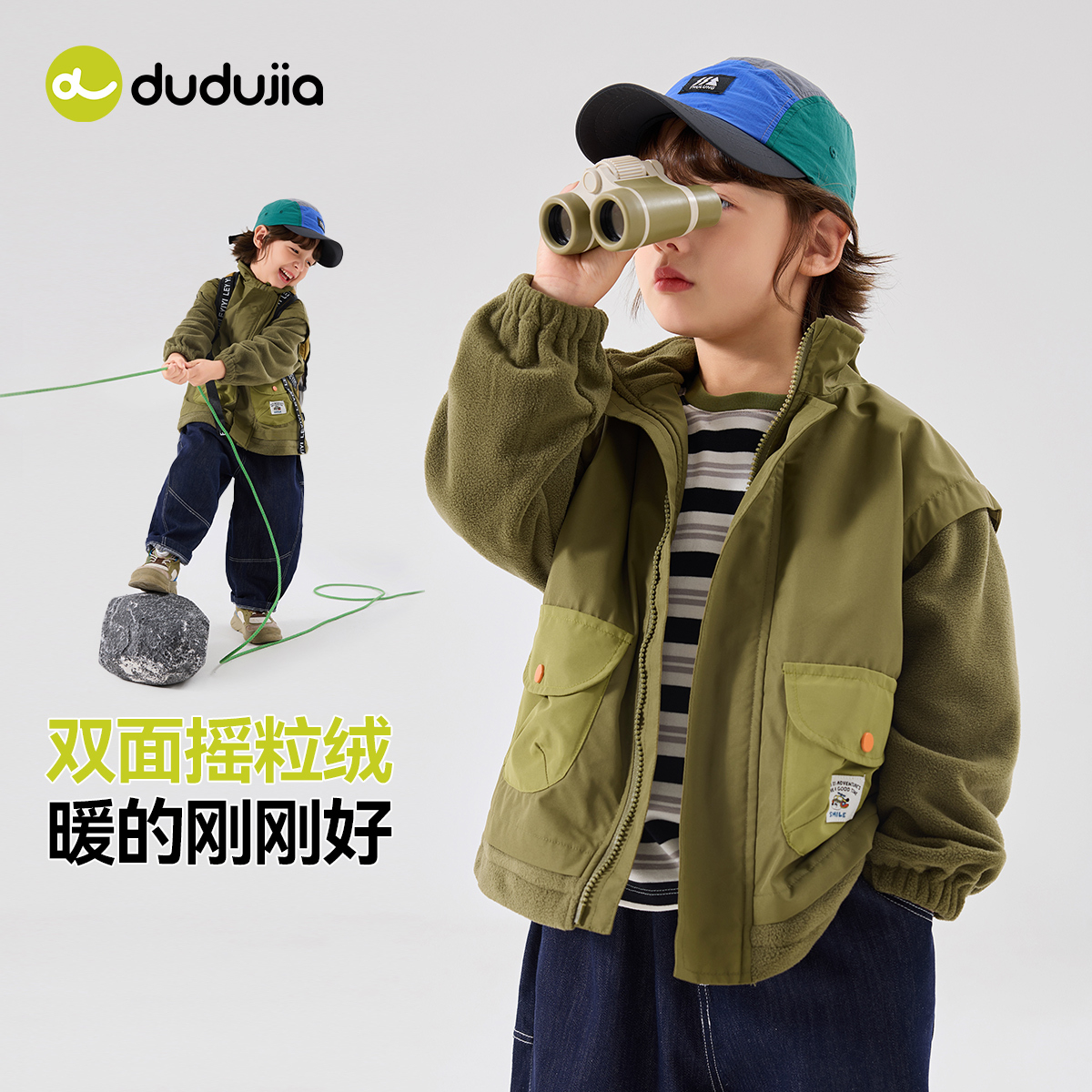 男童双面绒秋装 嘟嘟家宝宝户外机能服儿童外套秋款 上衣 假两件