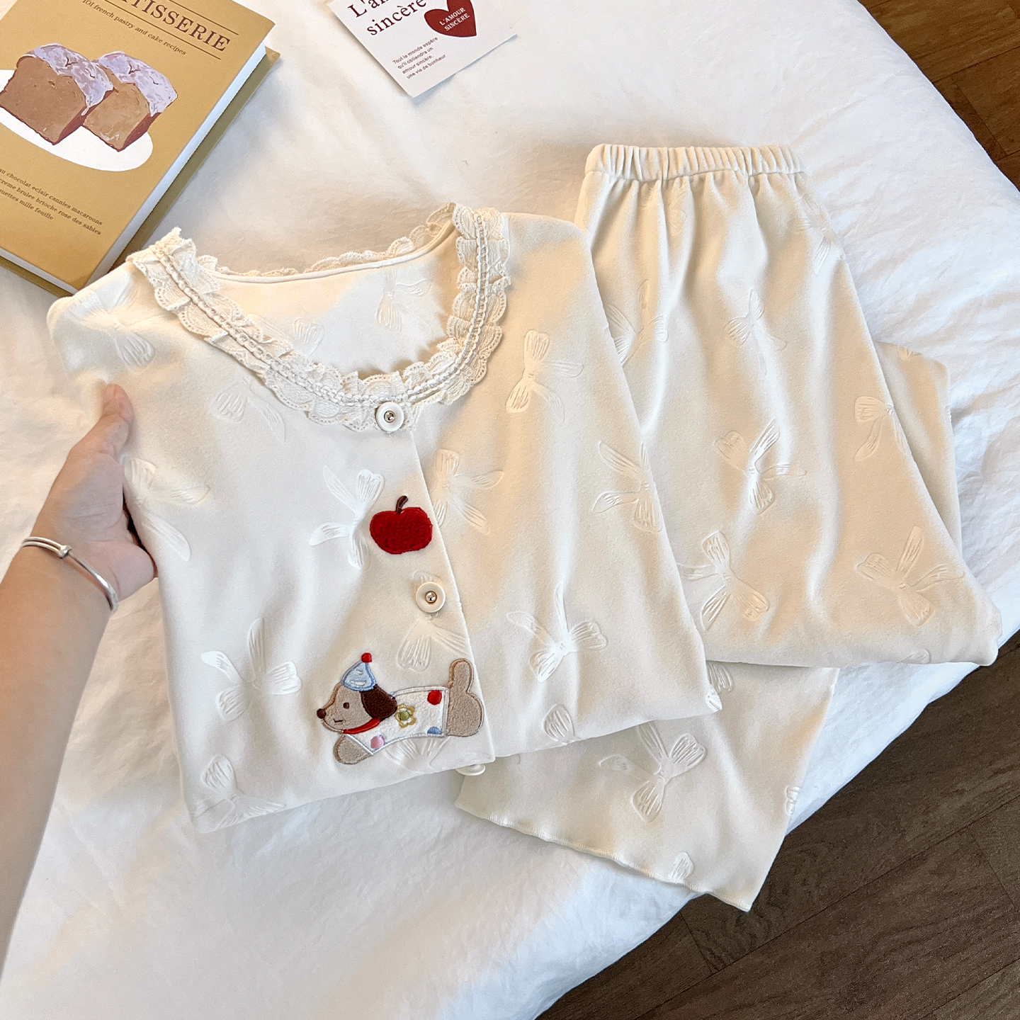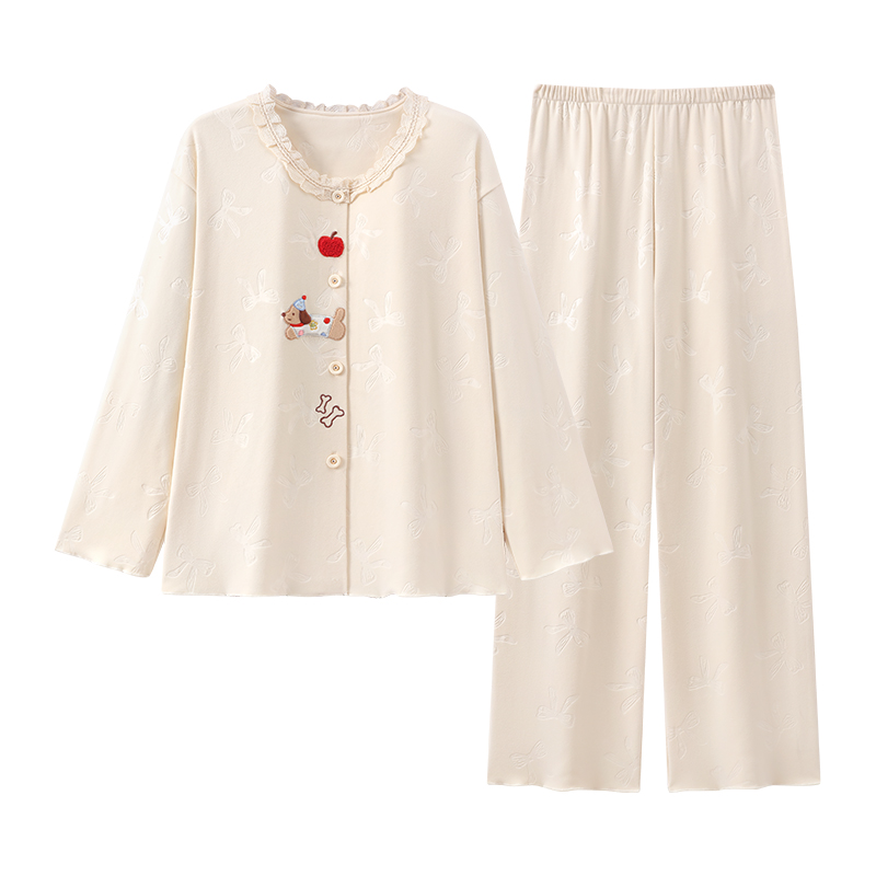 德绒长袖 开衫 长裤 可爱大码 保暖家居服 套装 卡通腊肠狗睡衣女秋冬款