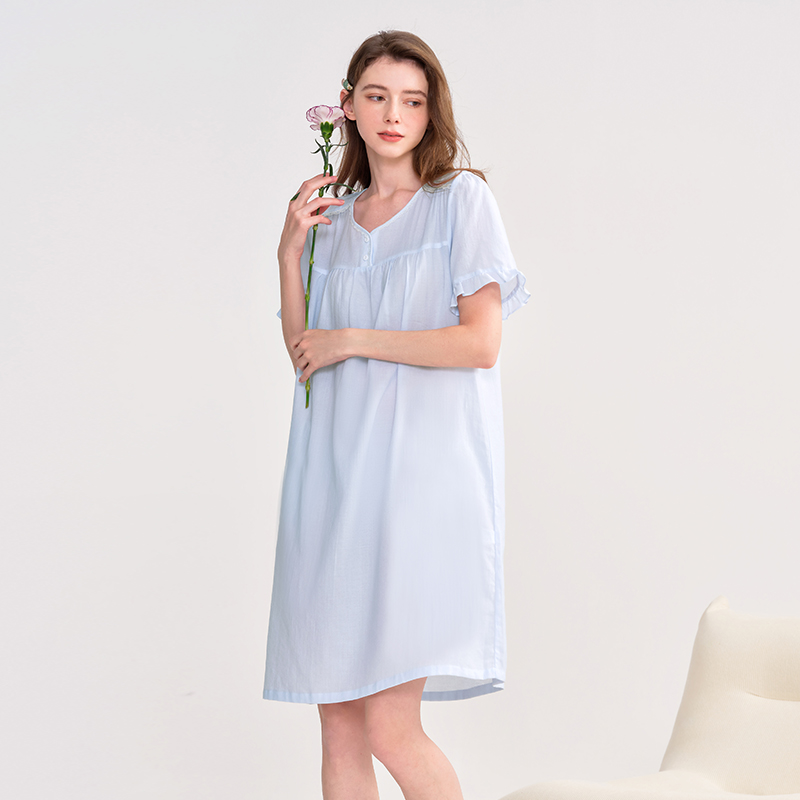 美标纯棉睡衣短袖 福利 睡裙梭织双层棉纱春夏女全棉家居服 特价