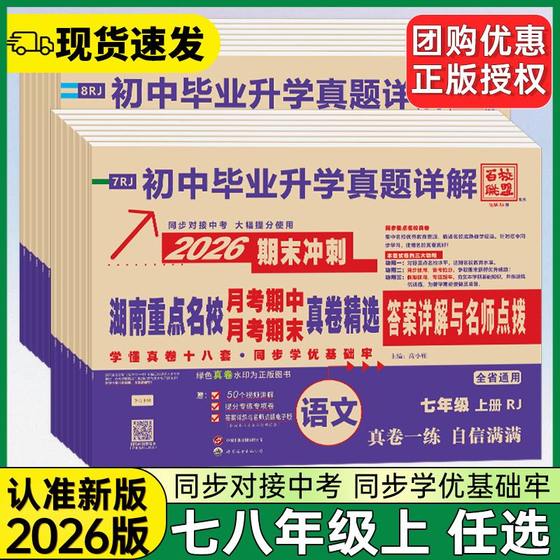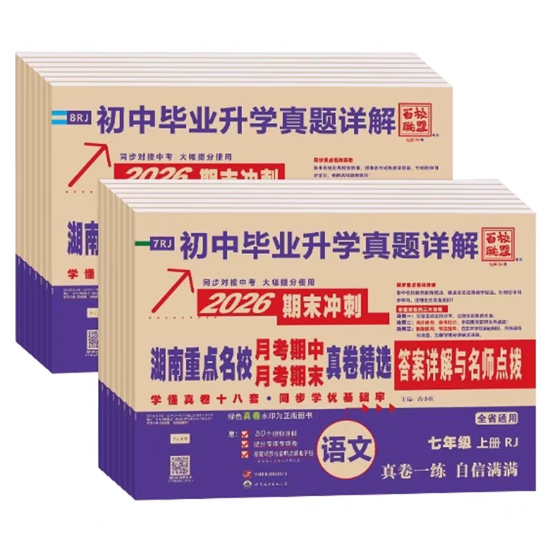 2026版 真题详解题试卷答案详解名师点评 湖南重点名校月考期中期末冲刺真卷精选语文数学英语物理初中毕业升学八年级上册下册人教版