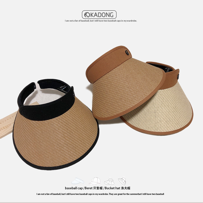 日本UV黑胶防晒帽草编遮阳帽空顶帽防紫外线太阳帽草帽夏季 帽子女