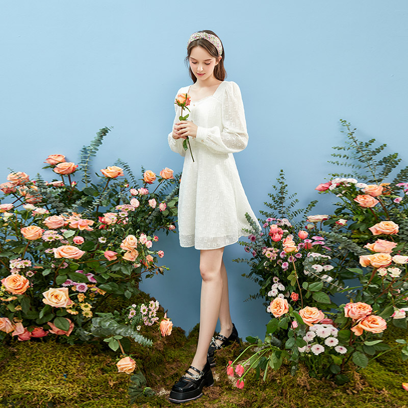黑白撞色重工花边拼接连衣裙女 经典 LULUALWAYS我爱露露冬季 新款