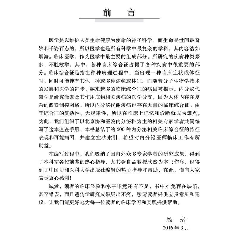 陈适等主编中国协和医科大学出版 第2二版 社9787567919044 协和内分泌综合征临床速查 现货正版