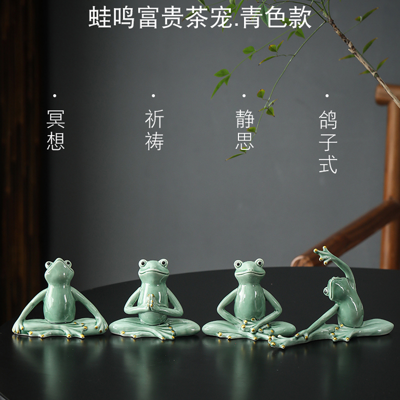 宇轩 创意茶宠青蛙瑜伽禅意青蛙摆件陶瓷工艺家居简约动物壁柜装