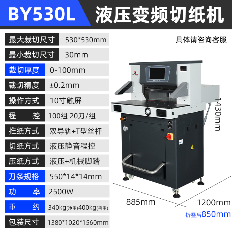 宝预BY530L液压切纸机全自动重型裁纸刀印刷商用小型自动裁纸机智能裁切机a3标书裁切刀静音型切纸器切10cm