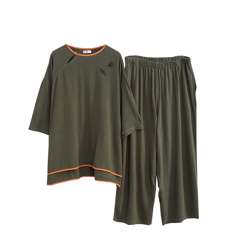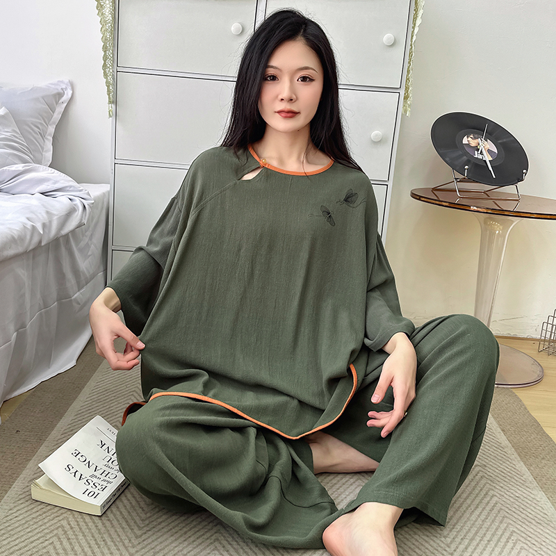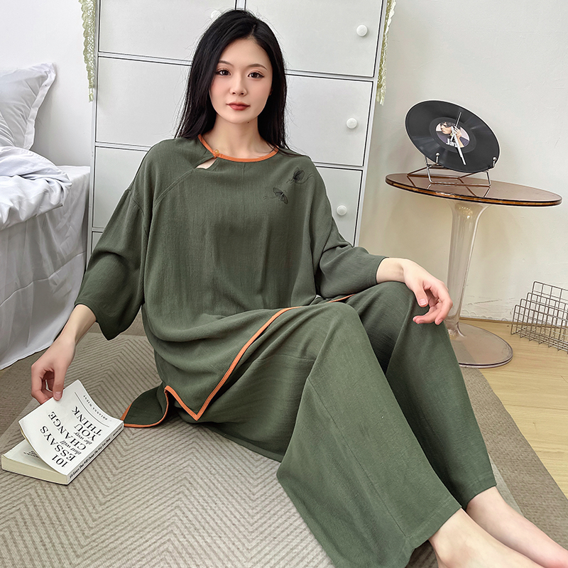 棉麻夏季 胖mm新中式 200斤居士服 睡衣女2025春新款 素衣禅修服大码