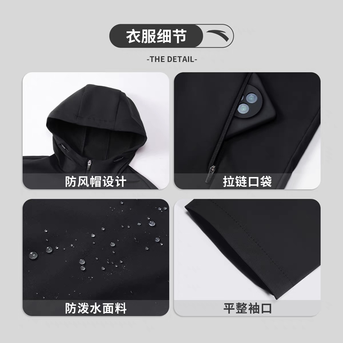 骆驼运动外套女秋季 黑色连帽风衣外套户外登山防水防风薄绒夹克男