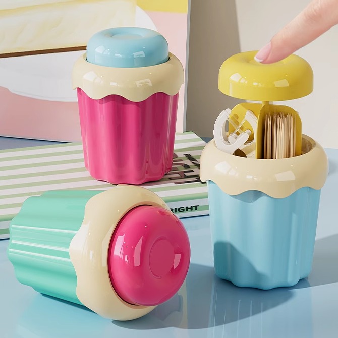 甜品牙签盒牙签筒牙线盒2025新款 自动弹出牙签罐收纳盒创意高颜值