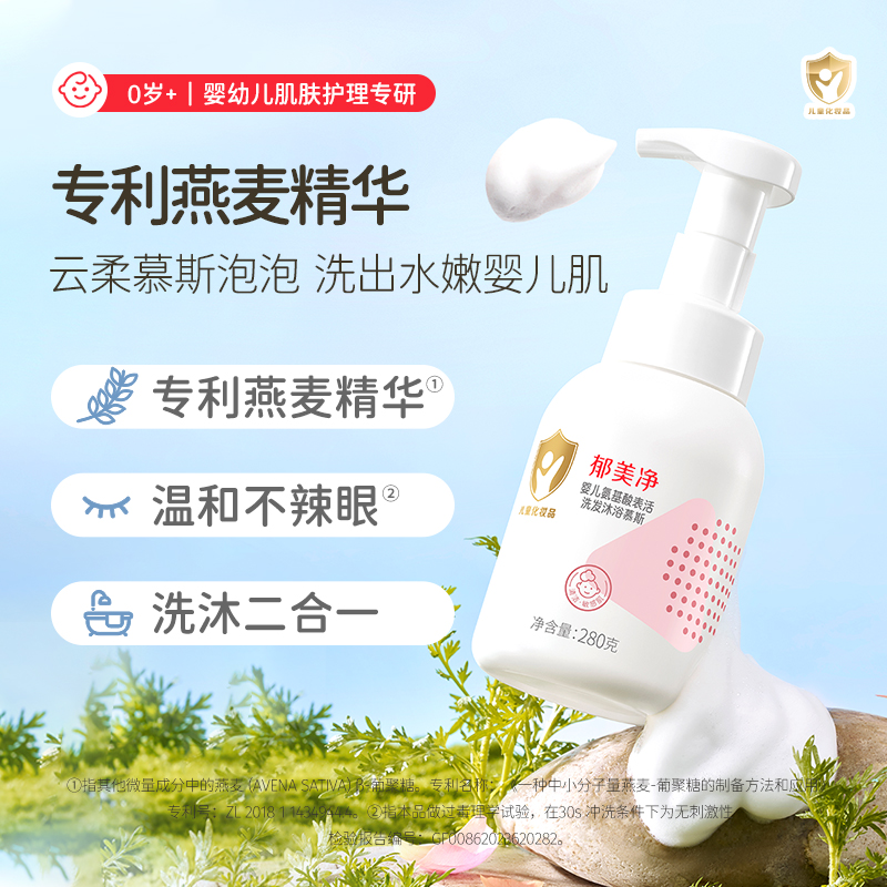郁美净婴儿氨基酸慕斯洗发沐浴二合一280g泡泡清洁保湿 沐浴