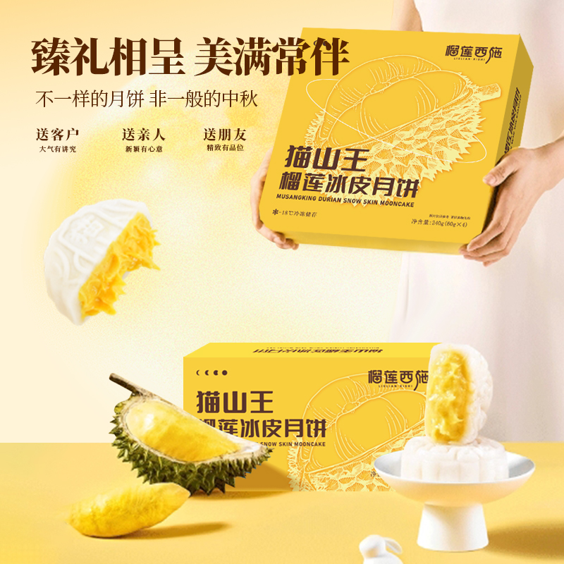 榴莲西施猫山王榴莲冰皮月饼2025年新款 礼盒团购中秋节伴手礼送礼