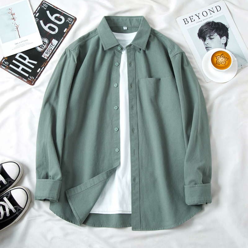 条纹绿色长袖 纯棉法兰绒磨毛格子衬衫 春秋季 内搭打底衫 衬衣潮 男士