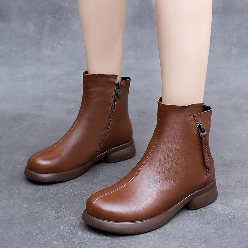 冬季 真皮平底大码 短靴女2024新款 43时尚 休闲单靴 加肥加宽女靴41