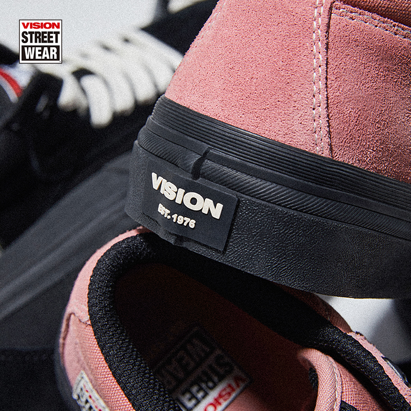 男女 街头中帮复古翻毛皮滑板鞋 VISION官方 CONCAVE粉墨色经典