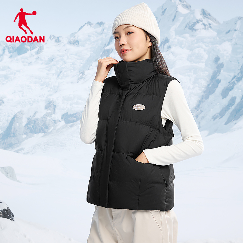 立领背心外套 保暖防泼水运动开衫 乔丹羽绒梭织马夹女2025冬季 新款