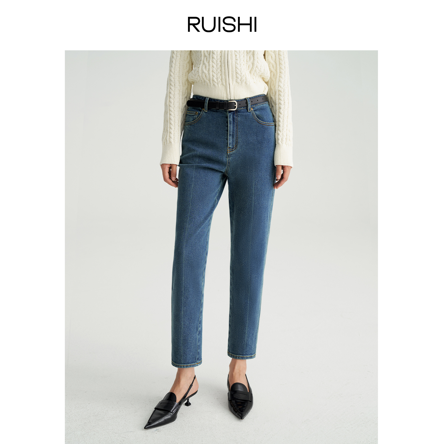 加绒牛仔裤 太平鸟高腰紧身小脚牛仔裤 温暖丹宁修身 款 2025年春季