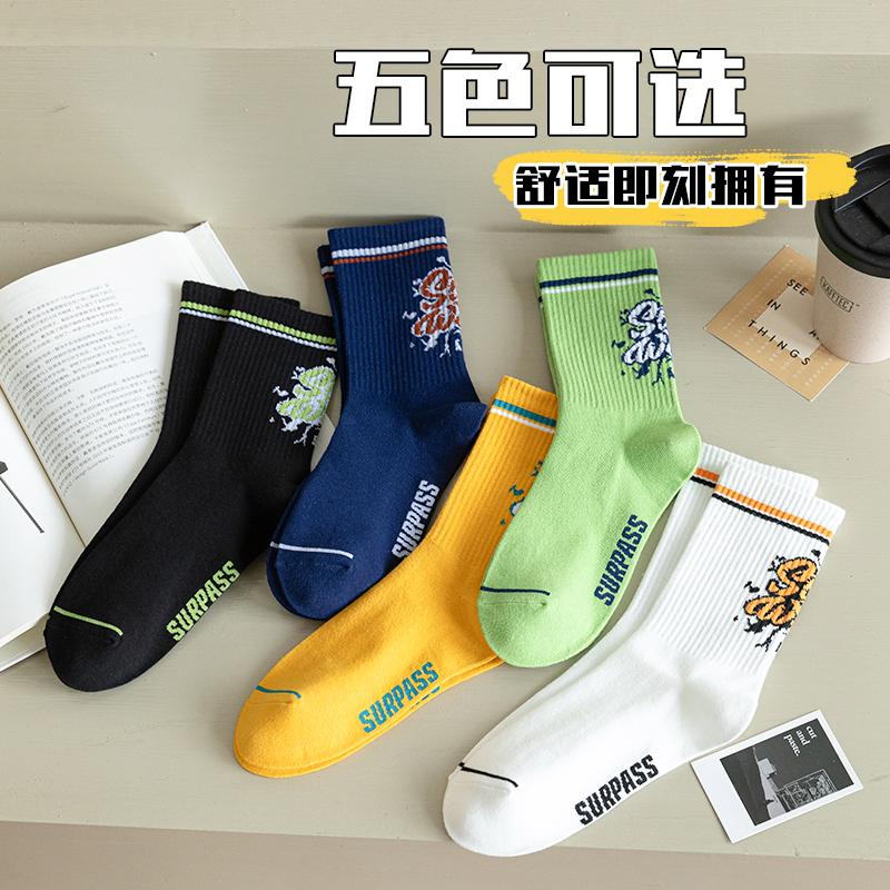 男生袜子青少年春秋款 100%纯棉长袜吸汗防臭篮球袜运动潮流学生袜