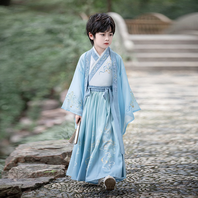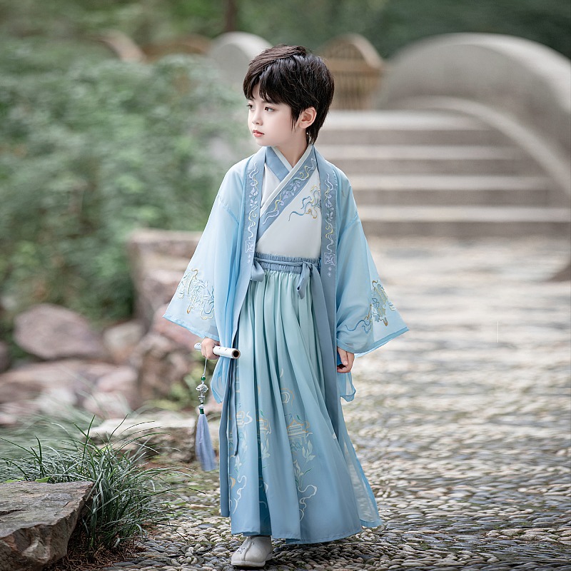 演出服薄款 儿童古装 汉服男童帅气国学中国风少爷武侠古风公子唐装