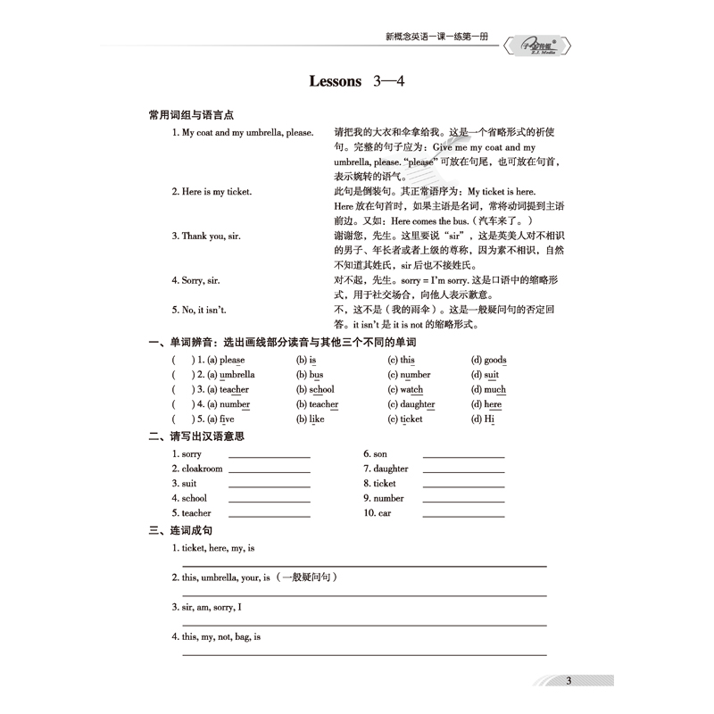 子金传媒新概念英语一课一练1英语初阶 新概念英语系列专项练习书英语词汇速记练习册尖子生题库英语高分突破能力暴涨秘籍专项训练