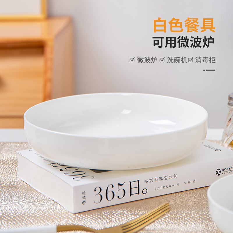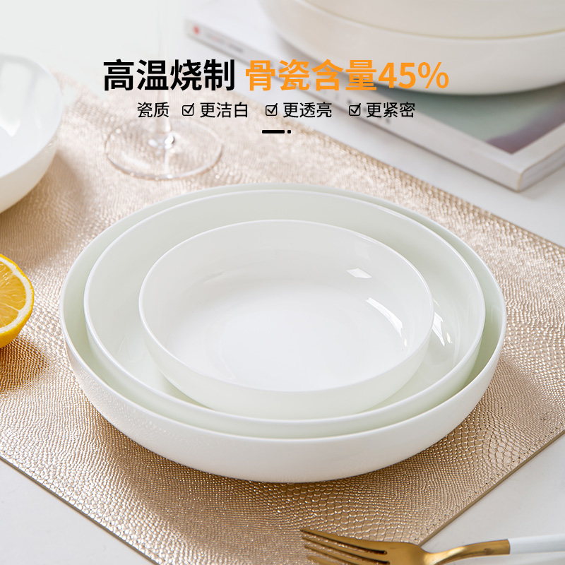 盘子家用菜盘白色深盘纯白骨瓷餐具酒店简约陶瓷碟子餐盘瓷盘圆盘