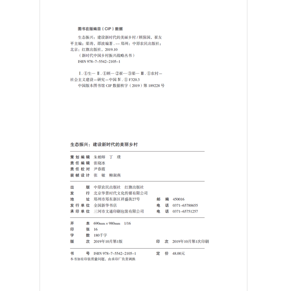 生态文明 红旗出版 生态振兴: 社 中原农民出版 新时代中国乡村振兴战略丛书 生态振兴 美丽乡村 建设新时代 现货 正版