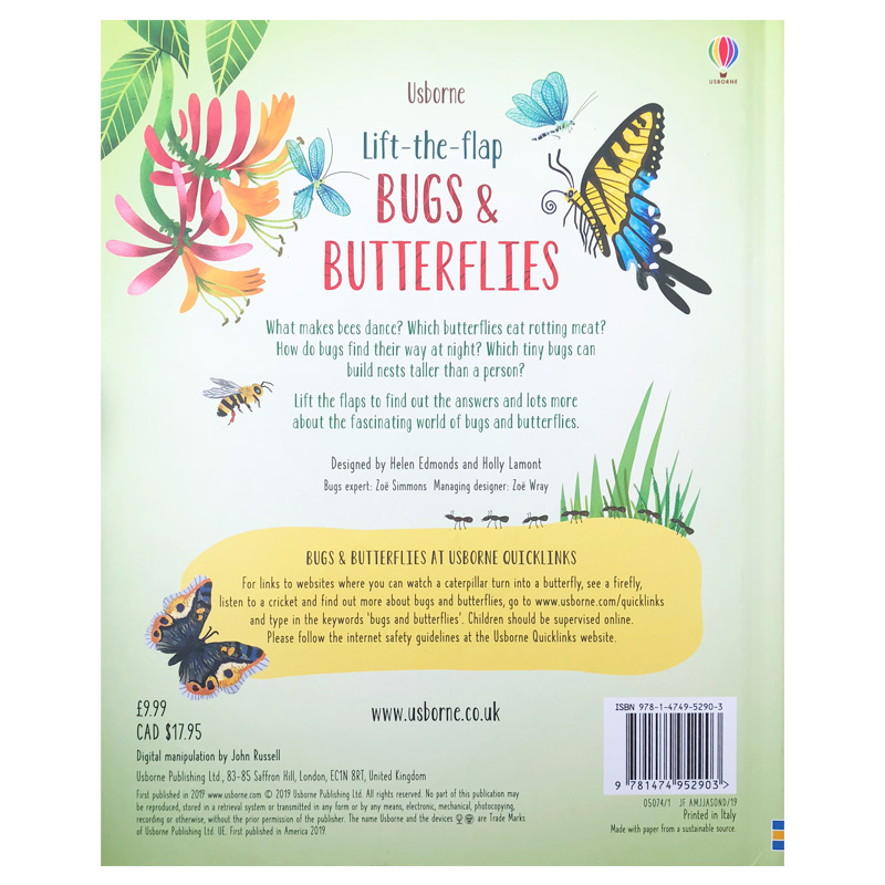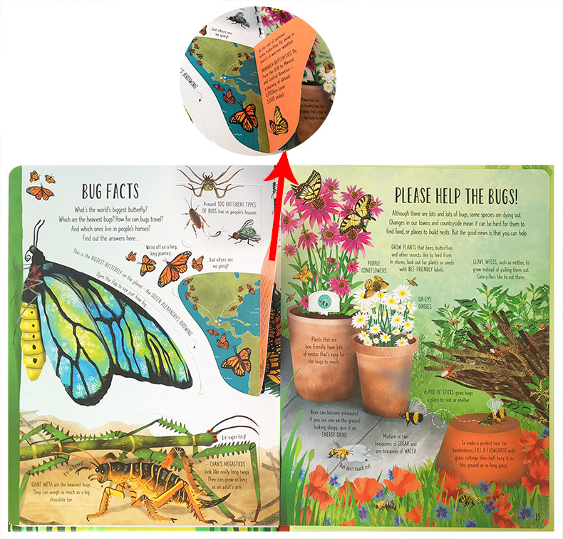昆虫与蝴蝶 6岁启蒙认知纸板书 the and Butterflies Bugs Lift Flap 预售英文原版 翻翻书 绘本