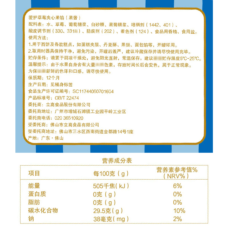 立高爱护草莓夹心果馅3kg 芒果菠萝果酱烘焙蛋糕慕斯面包商用馅料