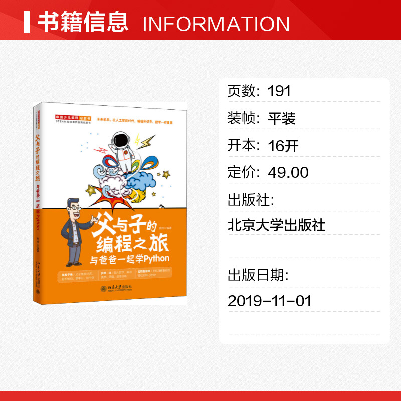 北京大学出版 父与子 中小学生编程少儿编程入门教程童趣味亲子互动教孩子学编程书籍 与爸爸一起学Python 社 编程之旅