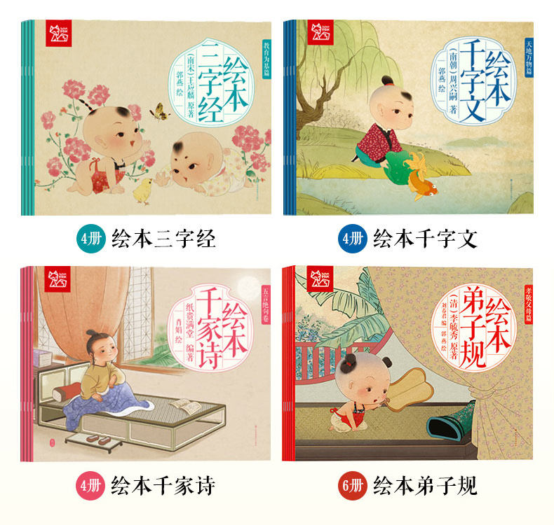 小学生千家诗完整版 18册三字经书千字文弟子规注音版 儿童早教绘本幼儿园推荐 幼儿国学启蒙经典 蒙学经典 教材图书籍正版 礼盒装